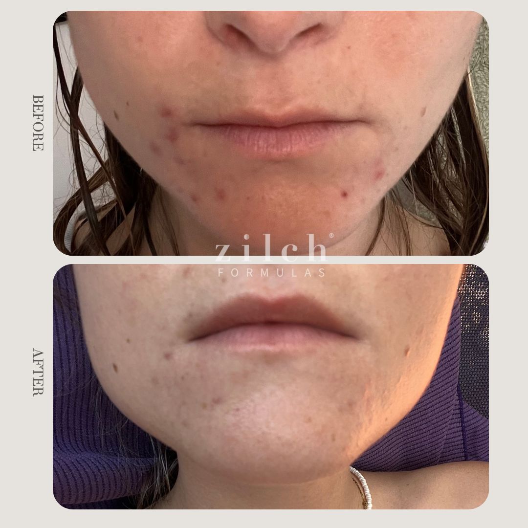 "I had acne on my cheeks and all around my mouth and jawline. Nothing I had tried for the past 3 years had worked. I found Zilch on inst...agram and did a lot of research and saw their amazing results and decided to try them for myself. Not even a week later and my skin was already clearing up. Fast forward a few weeks and my skin was less red, less inflamed and I had no new acne appearing. Just over a month and my acne had completely cleared! With no side effects and after 4 years of painful acne these were the only things that worked for me! They are a little expensive but they work and not only did they clear my skin but they helped my body too."